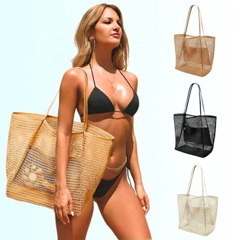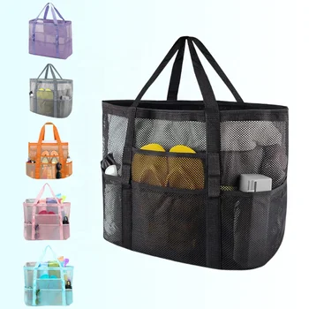 Camping Toys Mesh Storage Tote Bag Travel Vacation Hand Bag Sports Beach Swimming Bag