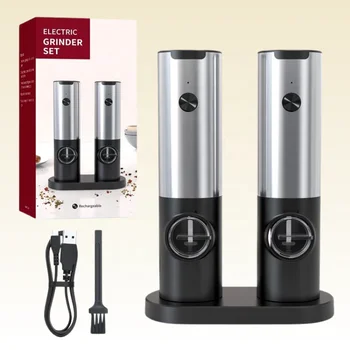 Kitchen Gadgets Automatic Salt Pepper Mill Shakers USB Rechargeable Electric Pepper Grinders with Base